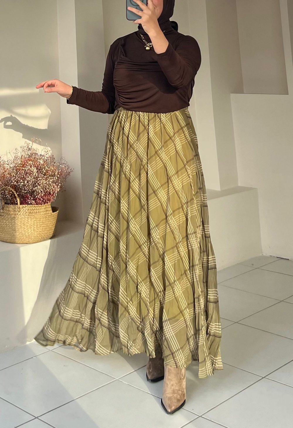 Hafif dokusu ve akıcı duruşuyla şıklığı konforla buluşturan şifon eteğimiz, astarlı yapısıyla iç göstermez ve günlük kombinlerden özel davetlere kadar geniş kullanım sunar. Standart beden olması sayesinde 36–42 aralığına rahatlıkla uyumludur.