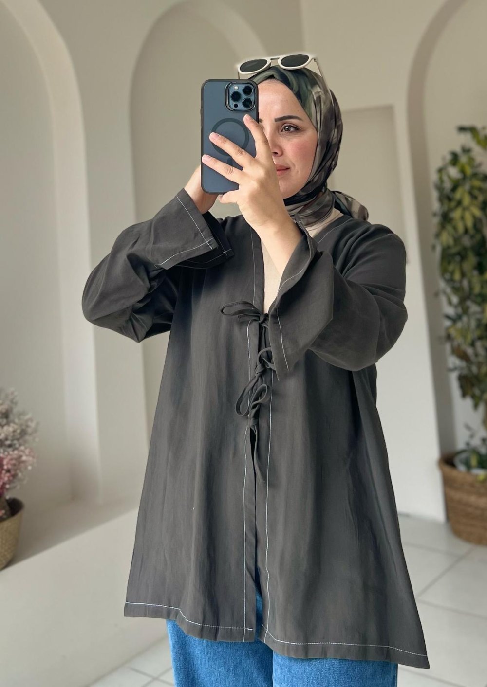 • Detaylar: Önden bağlamalı tasarımıyla hem şık hem de kullanışlı bir görünüm sunar. Dikiş detayları modele hareket kazandırır.