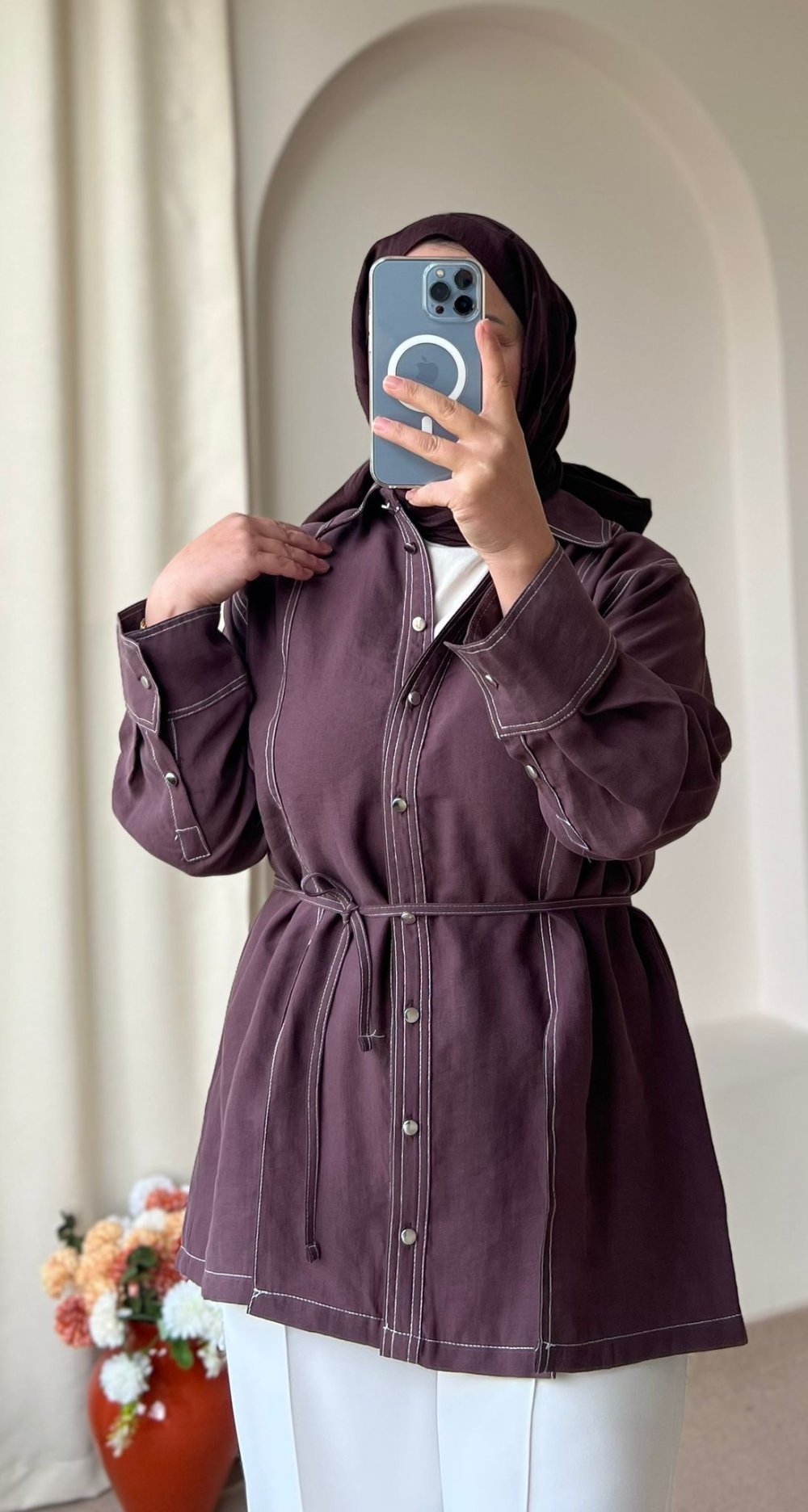 Kadın Gardenya Çift Dikiş Detaylı Gömlek Mürdüm