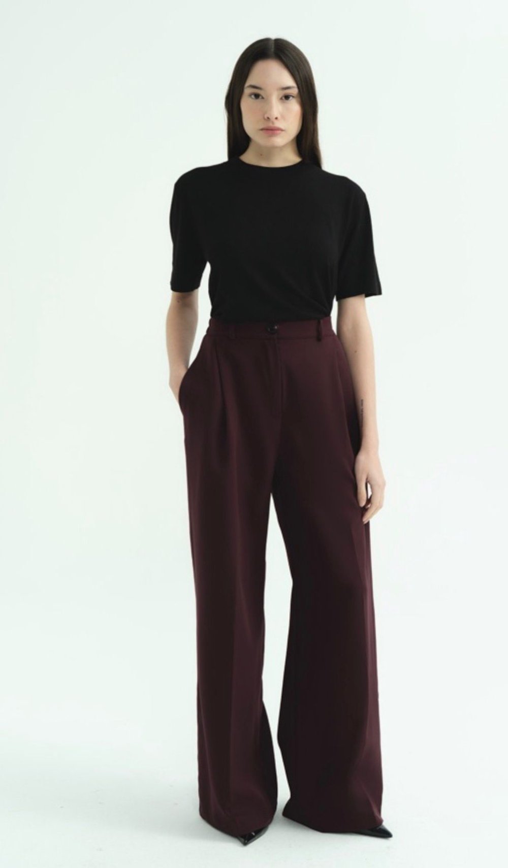 Şıklığı ve konforu bir arada sunan tek pileli palazzo pantolon, dökümlü yapısı ve zarif duruşuyla kombinlerinize modern bir dokunuş katıyor.
