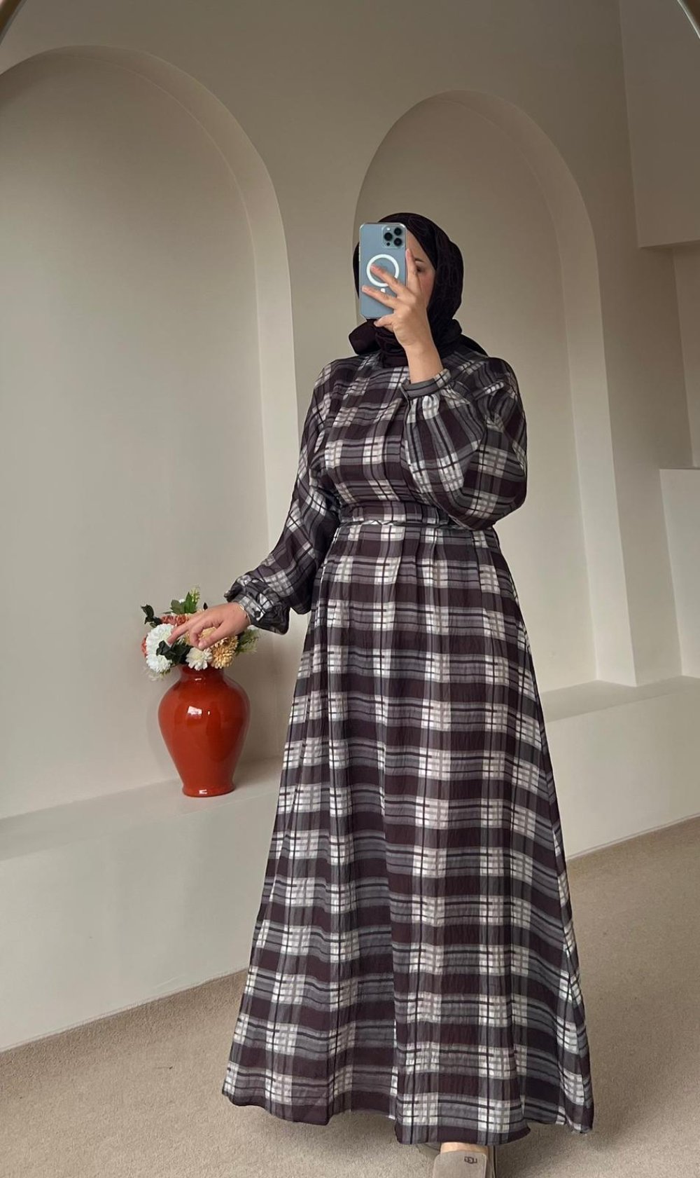 Yaz aylarında hafif ve ferah yapısıyla sizi efil efil hissettirecek, şıklığı ve rahatlığı bir araya getiren pile detaylı ekose elbise ile stilinizi tamamlayın.