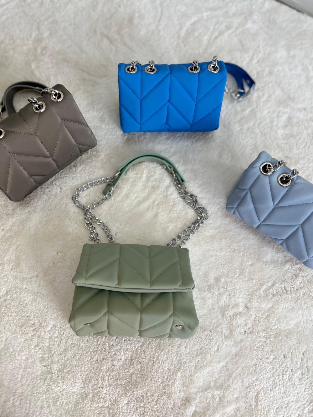Cesur ve modern tasarımlarıyla dikkat çeken bu çanta koleksiyonu, farklı renk seçenekleri ve şık zincir detayları ile her stile uyum sağlar. Hem günlük kullanım hem de özel davetlerde rahatlıkla tercih edilebilecek bu çantalar, zarif ve pratik bir tasarımı bir arada sunuyor. Mavi, gri, siyah, yeşil ve daha birçok renk alternatifi ile stilinizi dilediğiniz gibi tamamlayın!