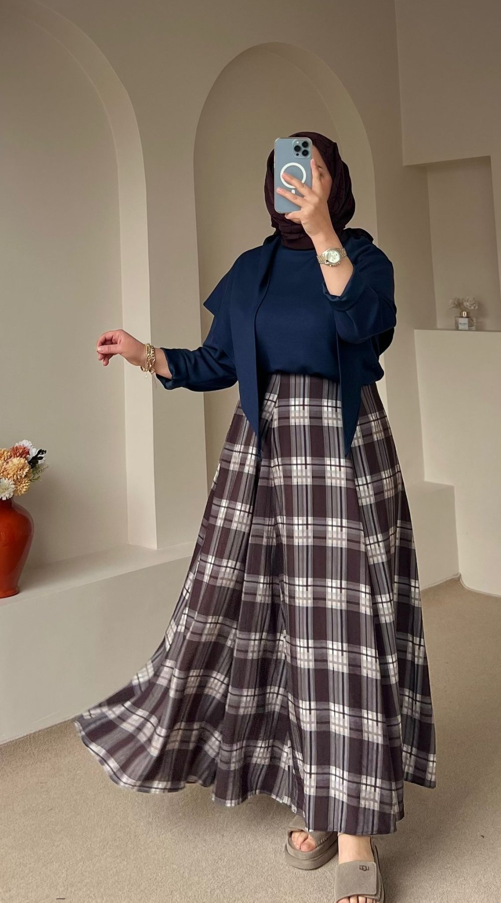 Modaya uyumlu ve hareketli tasarımıyla volanlı ekose etek, hem şık hem rahat bir tercih sunar.