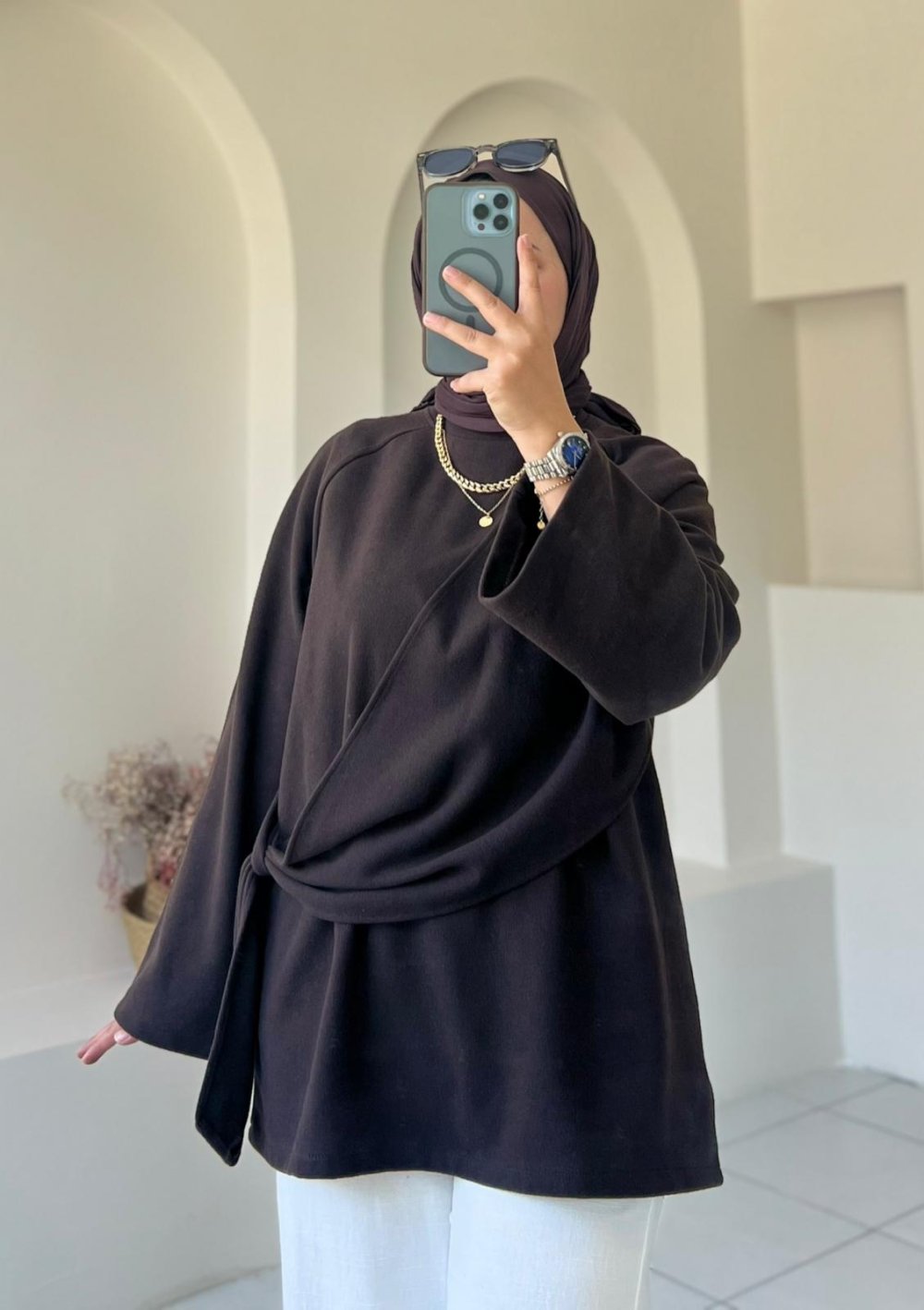 • Detay: Yandan bağlamalı şal görünüm